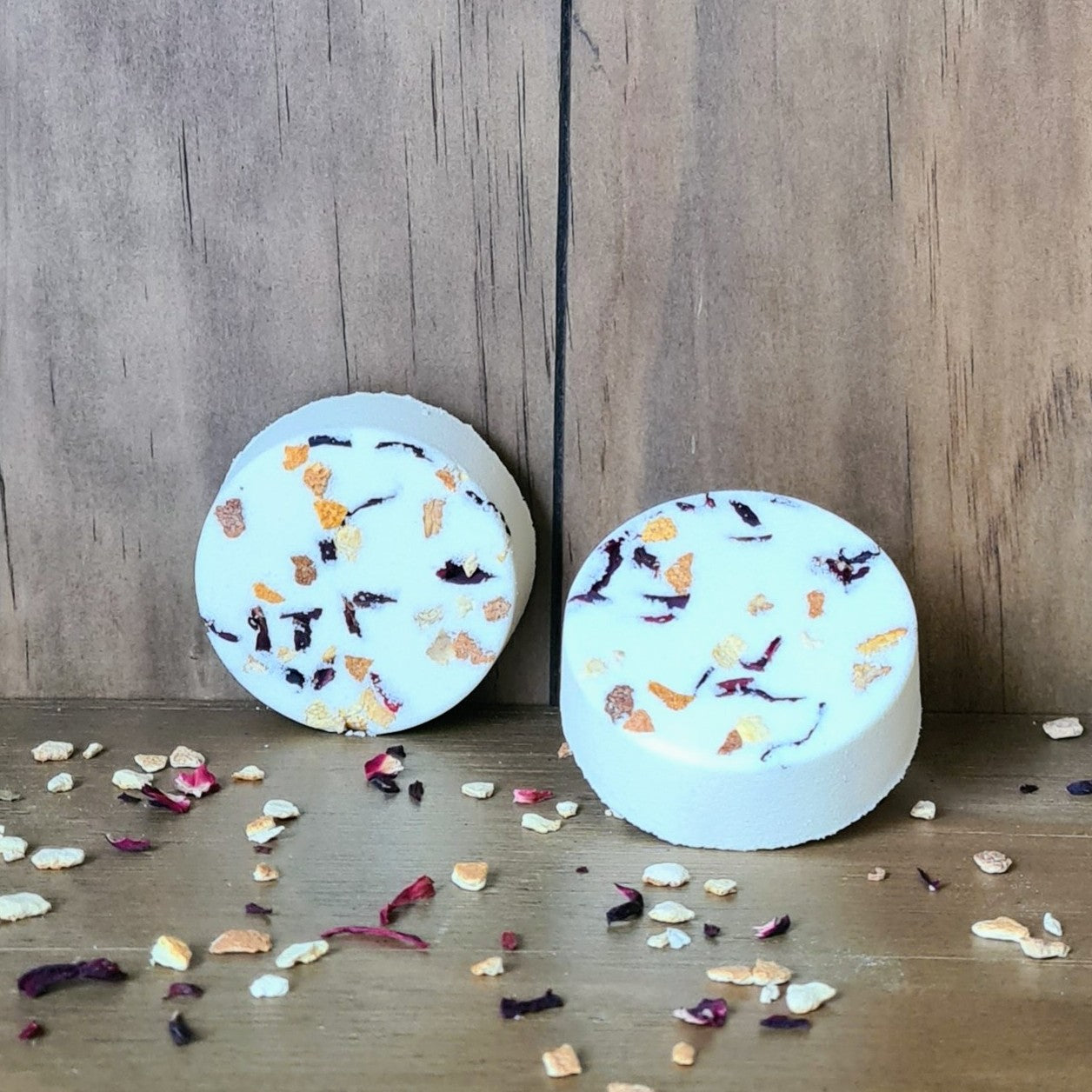 A shower steamer is a small, scented tablet designed to release fragrance into the steam of a shower, providing an aromatherapy experience similar to a bath bomb but for the shower.